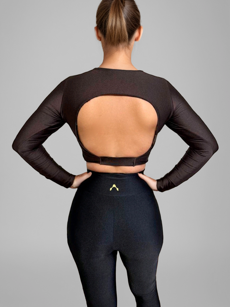 Langarm-Crop-Top - Kaffee